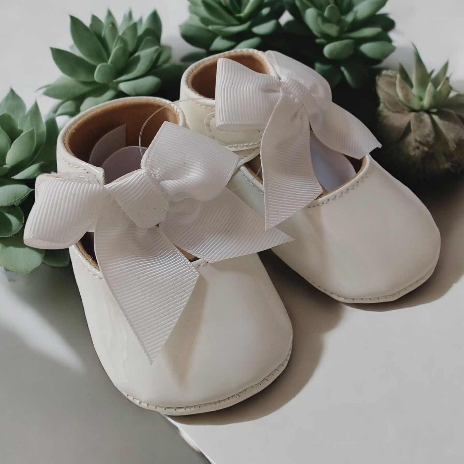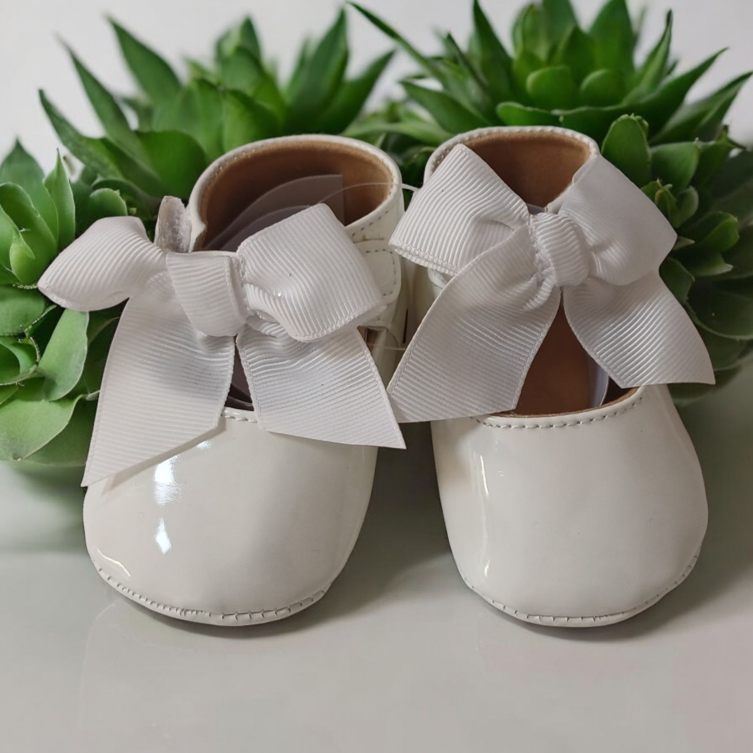 Śliczne, lakierowane buciki- niechodki z kokardą.