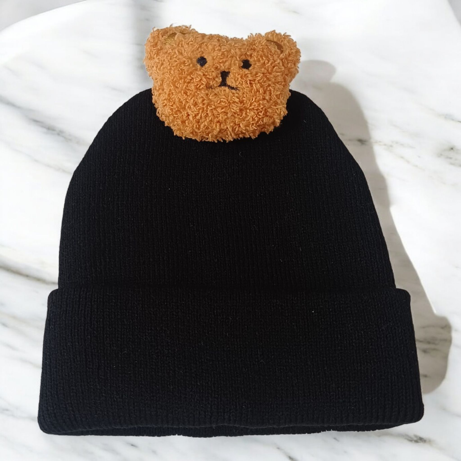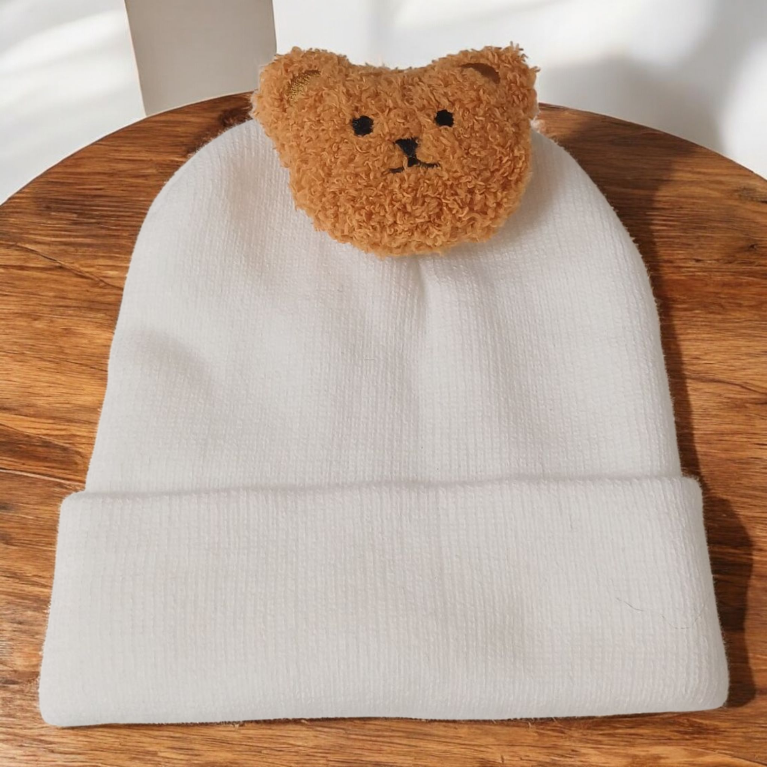 Oryginalne czapeczki z misiem w kolorze białym lub czarnym. Rozmiar 12- 24 m- cy.