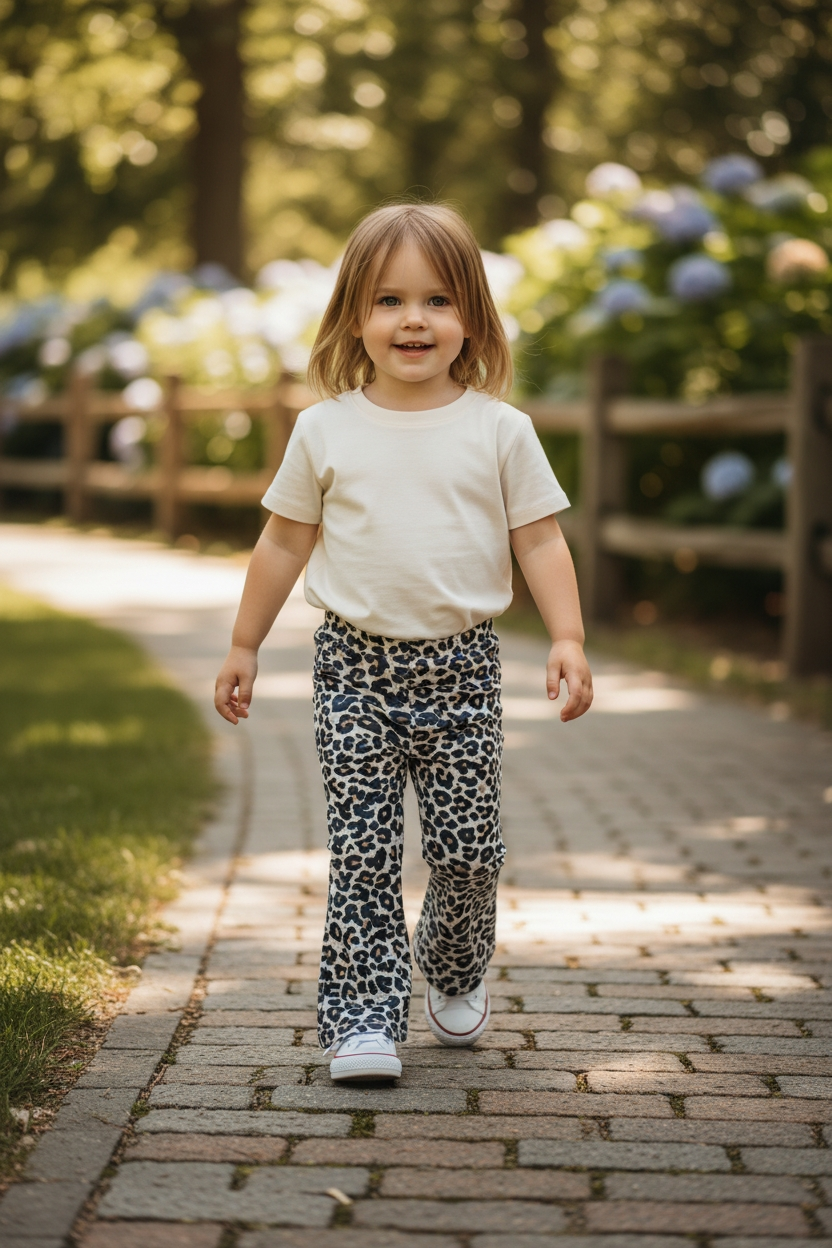 Bardzo modne tego sezonu spodnie typu dzwony w modnym, zwierzęcym princie. Wykonane z najwyższej jakości dzianiny jersey z domieszką elastanu.