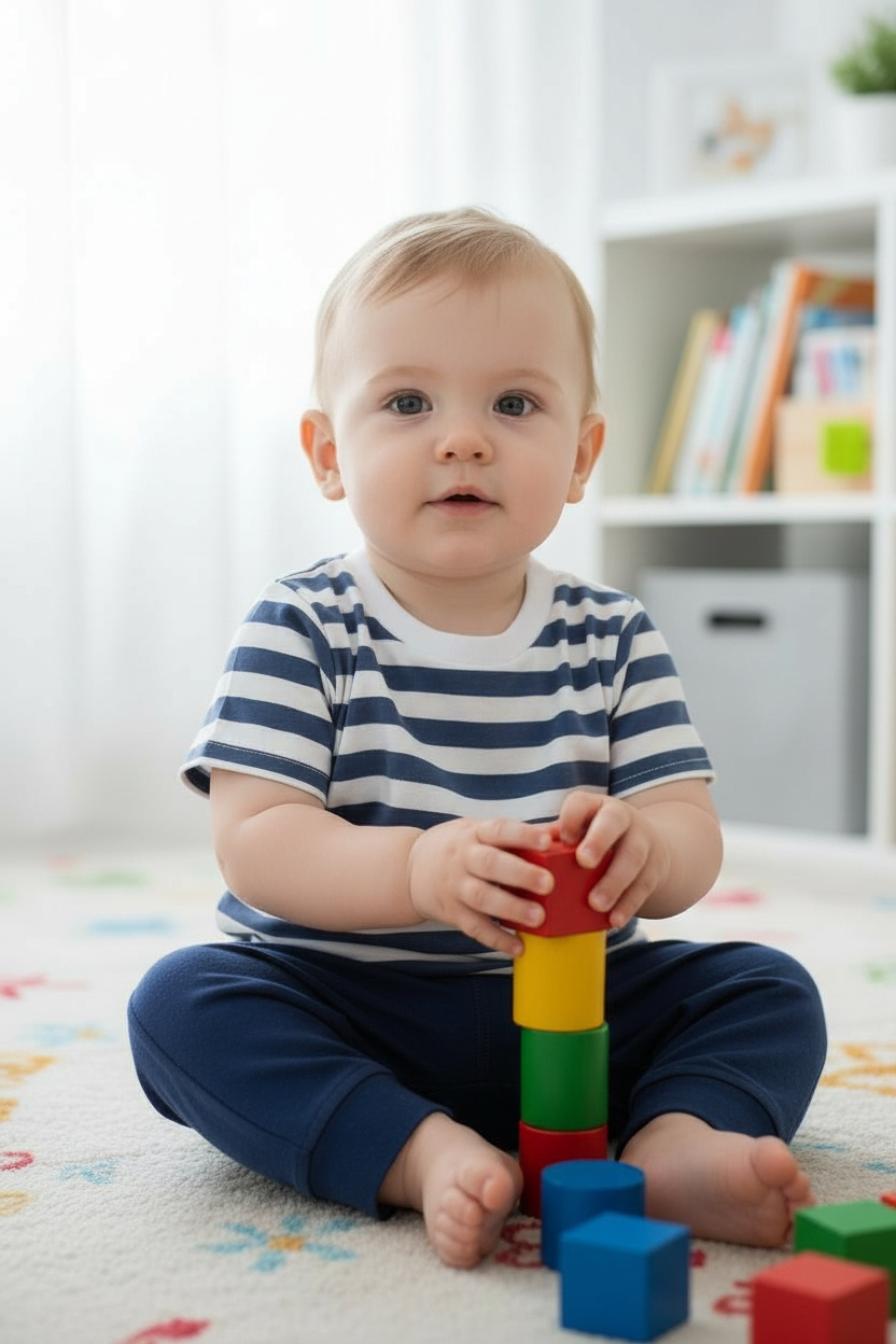 Niezwykle wygodny i oddychający t- shirt niemowlęcy w marynarski print PASKI. Wykonany z przyjemnej w dotyku dzianiny jersey z domieszką elastanu, która ułatwia użytkowanie. Idealny nie tylko do letnich stylizacji! Nieodłączny element garderoby każdego maluszka!!!